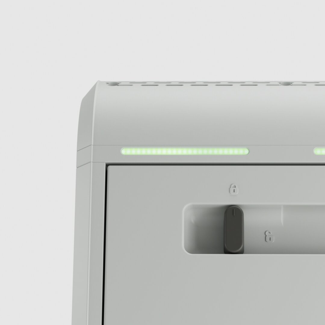 AW-enheten har ett LED-gränssnitt som kommunicerar status genom enkla färgkoder. Med ett ögonkast ser du om enheten fungerar normalt, behöver uppmärksammas eller om en filterkassett snart behöver bytas ut. Detta ger dig tid att planera service och beställa filter i förväg, vilket gör underhållet förutsägbart och din enhet driftsäker.